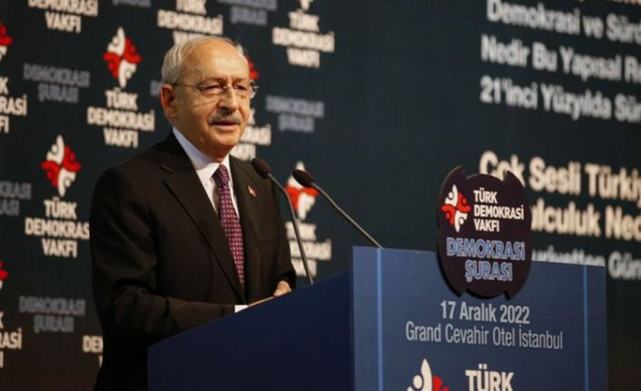 CHP Genel Başkanı Kemal Kılıçdaroğlu, Türk Demokrasi Vakfı’nın düzenlediği Demokrasi Şurası’nda gündeme yönelik açıklamalarda bulundu. Toplantıya Demokrat Parti Genel Başkanı Gültekin Uysal, Gelecek Partisi Genel Başkanı Ahmet Davutoğlu, İYİ Parti TBMM Grup Başkanı İsmail Tatlıoğlu, Saadet Partisi Genel Başkan Yardımcısı Mustafa Kaya, İstanbul Büyükşehir Belediye Başkanı Ekrem İmamoğlu, CHP İstanbul İl Başkanı Canan Kaftancıoğlu, İYİ Parti İstanbul İl Başkanı Buğra Kavuncu, siyasi partilerin genel başkan yardımcıları, milletvekilleri ve belediye başkanları katıldı.