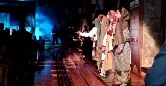 Çanakkale destanının anlatıldığı yaklaşık 15 dakikalık müzikli gösteride erkek oyuncular sahnede yer alırken, aynı gösterideki kadın oyuncuların salonun kenarında olması dikkat çekti.
