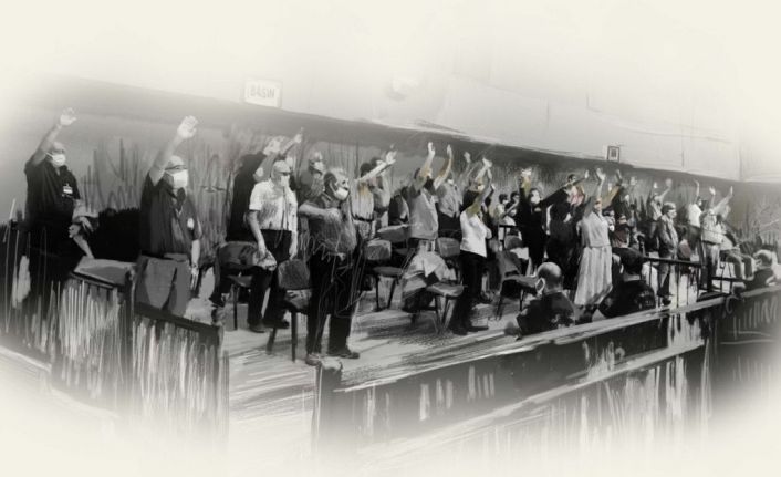 Önceki mahkeme başkanının bir suç örgütünün ikinci ismi olduğu iddiasıyla hakkında soruşturma başlatıldığını ve ev hapsi aldığını ifade eden dava avukatlarından Veysi Eski, “Mahkeme başkanı ise davanın durdurulması talebini, ‘Salondaki herkes hakkında soruşturma başlatılabilir, herkes suç işleyebilir.’ diyerek reddetti. Bahtiyar Bey’in tavrını KCK yargılamalarındaki Ali Alçık’ın tavırlarına benzettim. Çünkü ondaki özgüven farklı olduğunu ortaya seriyordu. Müvekkillerimizi konuşturmayan, bizi burada konuşturmayan kişi bir örgütün ikinci kişisi olmakla itham ediliyor şimdi…” dedi.