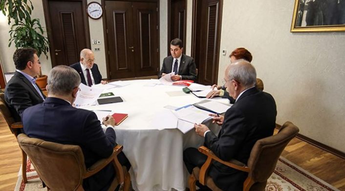 CHP lideri Kılıçdaroğlu, İYİ Parti Genel Başkanı Meral Akşener, DEVA Partisi Genel Başkanı Ali Babacan, Gelecek Partisi Genel Başkanı Ahmet Davutoğlu, Demokrat Parti Genel Başkanı Gültekin Uysal, bugün Saadet Partisi lideri Karamollaoğlu’nun ev sahipliğinde bir araya gelecek.