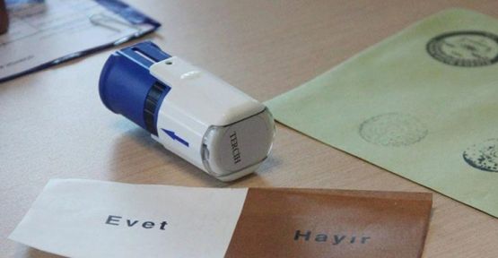 Bazı seçmenler dağıtılan mühürde, 'Evet' yazmasına tepki gösterdi. (Hatay/DHA)