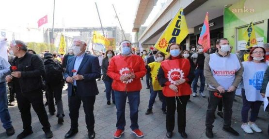 “Üretenlerin yöneten olduğu bir düzen, eşitlik kardeşlik bayrağını hep birlikte yükselteceğimiz gün olacak” diyen Çerkezoğlu, “Bu 1 Mayıs’ı pandemi koşullarında karşılıyoruz. Kuşkusuz kendi sağlığımız ve toplumun sağlığı için bu kaygıları biz de taşıyoruz. Kuşkusuz milyonların katıldığı mitinglerde buluşamıyoruz. Şunu da söylemek istiyoruz ki, işçi sınıfının gerçek anlamda temsil edildiği 1 Mayıs’ın kutlanmasını engellemek, bunu yasaklamak, bunun önüne salgın gerekçesiyle yasaklar koymak asla kabul edilemez. Bizler 1 Mayısımızı iş yerlerimizden evlerimizin önüne sokaklarımıza meydanlarımıza alanlarımıza, evlerimizin balkonlarına pencerelerine kadar her yerde kutlamaya sesimizi ve sözümüzü haykırmaya devam edeceğiz. Yüreğimizin attığı her yer 1 Mayıs’tır diyoruz” ifadelerini kullandı. / DUVAR