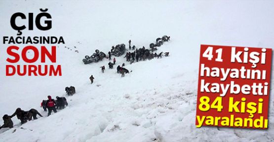 AFET ve Acil Durum Yönetimi Başkanlığı (AFAD), Van'da meydana gelen iki çığ faciasında toplam 41 kişinin yaşamını yitirdiğini, 84 kişinin ise yaralandığını açıkladı.