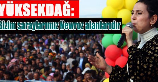Yüksekdağ, son olarak HDP'nin saraylarının alanlar olduğunu vurgulayarak, şunları söyledi: "Bizim Newrozlarımız alanlardadır. Bu alanları dişe diş bir mücadeleyle kazandık. Bu alanlar bizim şerefimizdir, onurumuzdur ve özgürlüğümüzdür. Biz onlar gibi saraylarda Newroz kutlayan bir zihniyetin sahibi asla ama asla olmadık. Şuna bir kere daha emin olsunlar o saraylarda yaptıkları kutlamanın hiçbir gücü yoktur. Bizim saraylarımız bu alanlardır. Halkın gönlünün yüreğinin saraylarında kutlanan Newrozlar ve burada yakılan ateşlerle Türkiye'nin geleceğini aydınlatacağız."