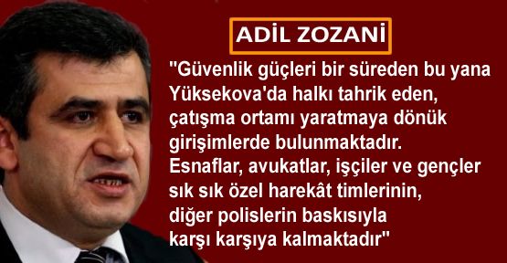 Zozani önergesinde şu ifadelere yer verdi: "Güvenlik güçleri bir süreden bu yana Yüksekova’da halkı tahrik eden, çatışma ortamı yaratmaya dönük girişimlerde bulunmaktadır. Esnaflar, avukatlar, işçiler ve gençler sık sık özel harekât timlerinin, diğer polislerin baskısıyla karşı karşıya kalmaktadır. İlçede adeta terör estiren güvenlik güçleri, hükümetin ‘kamu düzeni’ adı altında otoriter tedbirlere yönelmesinden ve yaptıkları her provokasyon sonrası arkalarında duran mülki amir ve emniyet yetkililerinden cesaret alarak, halka dönük baskıyı arttırmakta ve açıkça halkı infaz etmeyi görev edinmişlerdir. Devletin belli organları ve çeşitli sıfatlarla devlet içinde örgütlenmiş yapılar tarafından yapıldığı görülen bu provokasyonların hedefinde; Kürt meselesinin demokratik yöntemlerle çözülerek nihayetinde onurlu bir barışı esas alan demokratik çözüm ve barış sürecinin olduğu çok açıktır. Özellikle emniyet içerisinde aktif olarak yer alan farklı yapılar bu barış sürecinin başarısızlıkla sonuçlanması için her türlü provokasyonu gerçekleştirmektedir. Özellikle emniyet içinde örgütlenmiş bu yapıların polis eliyle, Kürt coğrafyasında yapılmak istenen gösteri, yürüyüş ve basın açıklamalarına karşı tahammülsüzlüğü söz konusu olup, halkın en temel demokratik haklarından biri olan gösterilere çoğu zaman saldırarak, halkı tahrik etmeye ve yeniden bir çatışma zemini oluşturmaya çalıştığı görülmektedir. Tüm bu yaşananlar karşında hükümetin tutumu son derece tehlikeli olup, yaratılmak istenilen provokasyonları görmezden gelmekle kalmayıp, bu yapıların süreci tehlikeye alan tahriklerini meşru göstermeye çalışan bir yaklaşım sergilemektedir. Hükümetin bu duyarsız yaklaşımı, güvenlik güçlerini daha da cesaretlendirerek benzeri provokasyonların devamının gelmesine sebebiyet vermektedir. Bütün bu gelişmeler göz önüne alındığında, Meclise düşen temel görevin; yaşanan bu provokasyonlardaki sorumluları açığa çıkararak yargılanmaları konusunda ön açıcı bir tutum sergilemek ve benzeri tahriklerin önüne geçen bir irade ortaya koymaktır. Bu anlamda, Türkiye halklarının onurlu bir barışa kavuşabilmeleri önündeki bu ve benzeri provokasyonlara engel olabilmek adına bir Meclis Araştırmasının açılması elzemdir."