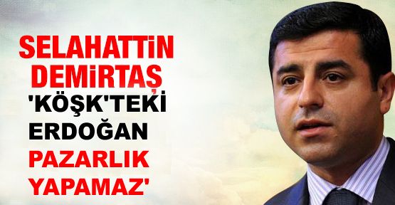 HDP Eşbaşkanı Demirtaş, Başbakan Erdoğan’ın çözüm sürecini siyasi bir rüşvete dönüştürdüğünü belirterek, “Hep ‘beni seçmezseniz barış bozulur’ diye oy istedi. Köşk’e çıkarsa artık barışı bir pazarlık konusu yapamaz. Daha cesur olması gerekir” dedi.
