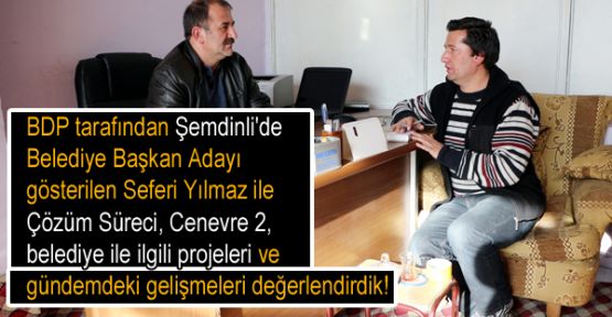 BDP tarafından Şemdinli’de Belediye Başkan Adayı gösterilen Umut Kitap Evi sahibi Seferi Yılmaz ile çözüm süreci, Cenevre 2, belediye ile ilgili projeleri ve gündemdeki gelişmeleri değerlendirdik.