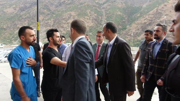 Kaymakam Güven ve Başkan Saklı, Şemdinli Devlet Hastanesi Başhekimi Opr. Dr. Onur Sakallı, Sağlık Bakım Hizmetleri Müdürü Emin Çelik, Beyin tümörü ameliyatı gerçekleştiren Beyin ve Sinir Cerrahisi Opr. Dr. Burak Bahadır ile hastane yönetimi tarafından karşılandı.