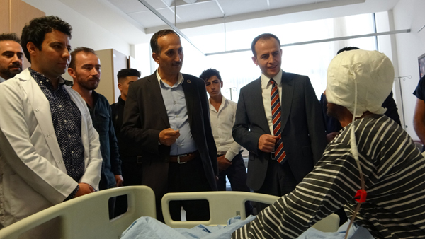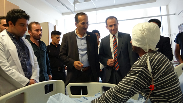 Beyin ve Sinir Cerrahisi Opr. Dr. Burak Bahadır, hasta hakkında Kaymakam Güven ve Başkan Saklı’ya bilgi verdi. Opr.Dr. Bahadır; “baş ağrısı ve denge bozukluğu gibi şikayetlerle hastanemize başvuran Mehmet Selim Güldal (50), yapılan muayenelerinde beyninde kanama olduğunu tespit ettik. Yaptığımız tetkiklerde hastanın beyninde tümöre bağlı olarak kanama olduğunu tespit ederek ameliyata aldık. Başarılı geçen 6 saatlik ameliyatın ardından Güldal, sağlığına kavuştu” dedi.