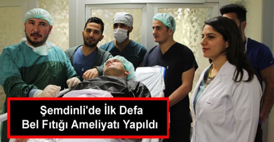 Şemdinli Devlet Hastanesi'nde ilk kez bel fıtığı ameliyatı yapıldı. Şemdinli Devlet Hastanesi'ne geçici görevlendirme ile gelen beyin ve sinir cerrahisi uzmanı Operatör Dr. Fatih Kırar ilk defa omurga ameliyatını (bel fıtığı) gerçekleştirdi.