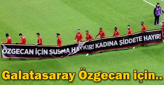Türk Telekom Arena'da oynanan karşılaşmanın 20. dakikasında yaklaşık 1 dakika boyunca ıslık çalan taraftarlar, "Özgecanımızı yakanlar, yaptıklarının cezasını fazlasıyla çeksin", "Kadına uzanan eller kırılsın" yazılı pankartlar açtı.