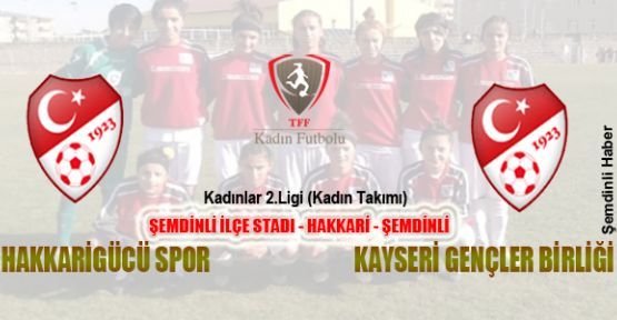 Türkiye Futbol Federasyonu Kadınlar 2. Liginde mücadele eden ve 25 puanı bulunan Hakkari Gücü Bayan Futbol Takımı, 1 puana sahip Kayseri Gençler Birliği ile 05 Nisan 2015 Pazar günü saat 14.00'de Şemdinli Şehir Stadyumu'nda karşı karşıya gelecek.