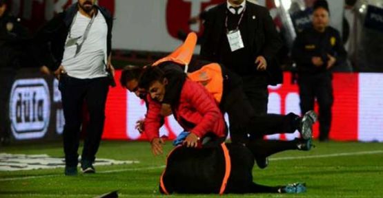 Sahaya giren bir taraftar ise maçın 6. hakemi Volkan Bayarslan’a saldırdı ve hakeme dayak attı. Güvenlik görevlileri Bayarslan’ı taraftarın elinden zor aldı.