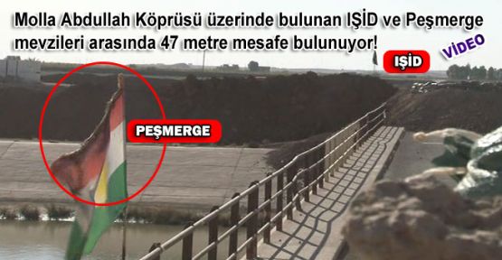 Irak’ın en tehlikeli bölgelerinden biri sayıldığı için sivillerin girişine yasak olan Molla Abdullah köprüsündeki IŞİD mevzileri, özel bir izinle bölgeye giden DHA görüntüledi. Molla Abdullah bölgesine gitmek için çok sayıda kontrol noktasından geçilirken, Peşmerge’nin bölgeye yüklü bir askeri yığınak yaptığı görüldü. 47 metrelik köprünün Kerkük tarafından Kürdistan bayrağı bulunurken, hemen karşısında kurulan mevzilerde ise IŞİD’in bayrağı dalgalanıyor. Köprünün üstüne kurulduğu Dukan Çayı'nın kenarındaki belli noktalarda da IŞİD’in bayrağı ve keskin nişancılarının bulunduğu küçük barakalar göze çarpıyor. Peşmerge ve IŞİD militanlarının birbirine en yakın olduğu bölgede gerginlik olduğu görülürken, yetkililer IŞİD militanlarının mevzilerinden hiç çıkmadıklarını ve görüntü vermediklerini söyledi.