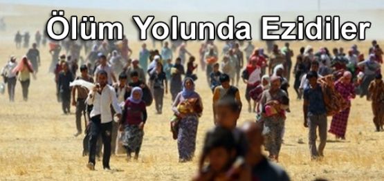 Burası Türkiye ile Irak arasındaki sıfır noktasında. Bir tarafta Irak diğer tarafta ise Türkiye var. Karşı taraftaki dere yatağını Türkiye yakından biliyor, Roboski... İşte o dereyi takip ederek sabahın erken saatlerinden bu yana ardı arkası kesilmeden binlerce Ezidi Türk sınırına doğru hareket etti. Yaklaşık 7-8 km. Ötedeki Haftanin'den başladılar yürümeye. Sıfır noktasına onlara su tedarik ediliyor. Aralarında günlerdir su içmemiş olanlar var.
