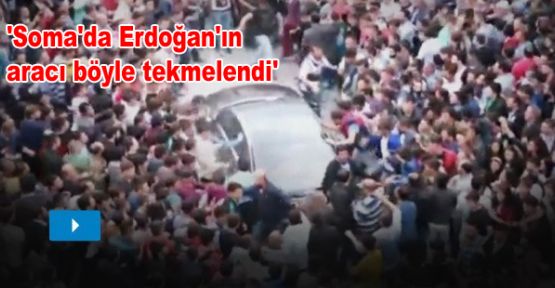 Görüntülerde, Erdoğan’ın olduğu öne sürülen araç, Soma’da protestocular tarafından önü kesilerek, tekmelendiği görülüyor.