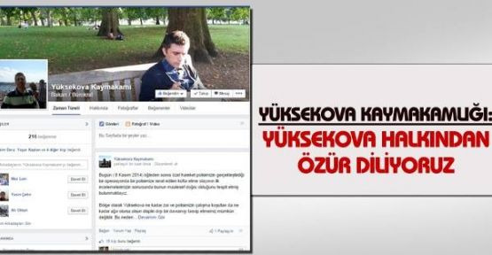 Bahse konu olan ve ilçemize geçici görevle gelen memur hakkında gerekli disiplin işlemini Hakkkari İl Emniyet Müdürlüğümüz bünyesinde başlatmış bulunmaktayız. Binlerce polisimizin görev yaptığı Yüksekova'da tek bir memurun yaptığı bu hatayı ise asla emniyet teşkilatımızın tamamına mal edilmemesini halkımızdan rica ediyoruz. YÜKSEKOVA KAYMAKAMLIĞI.”