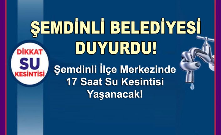 Şemdinli Belediyesi resmi sosyal medya hesaplarında yapılan duyurularda; "İlçemizin içme suyunu karşılayan su depolarında yapılacak genel temizlik ve dezenfeksiyon çalışmaları nedeniyle 22 Temmuz 2022 Cuma günü 17.00 ile 23 Temmuz 2022 Cumartesi günü 10.00 saatleri arasında ilçe merkezi genelinde su kesintisi yaşanacaktır. Vatandaşlarımızın kesintiden mağdur olmamaları için önlem almaları gerekmekte olup, çalışmaların erken tamamlanması durumunda su belirtilen saatten önce verilebilecektir" denildi.